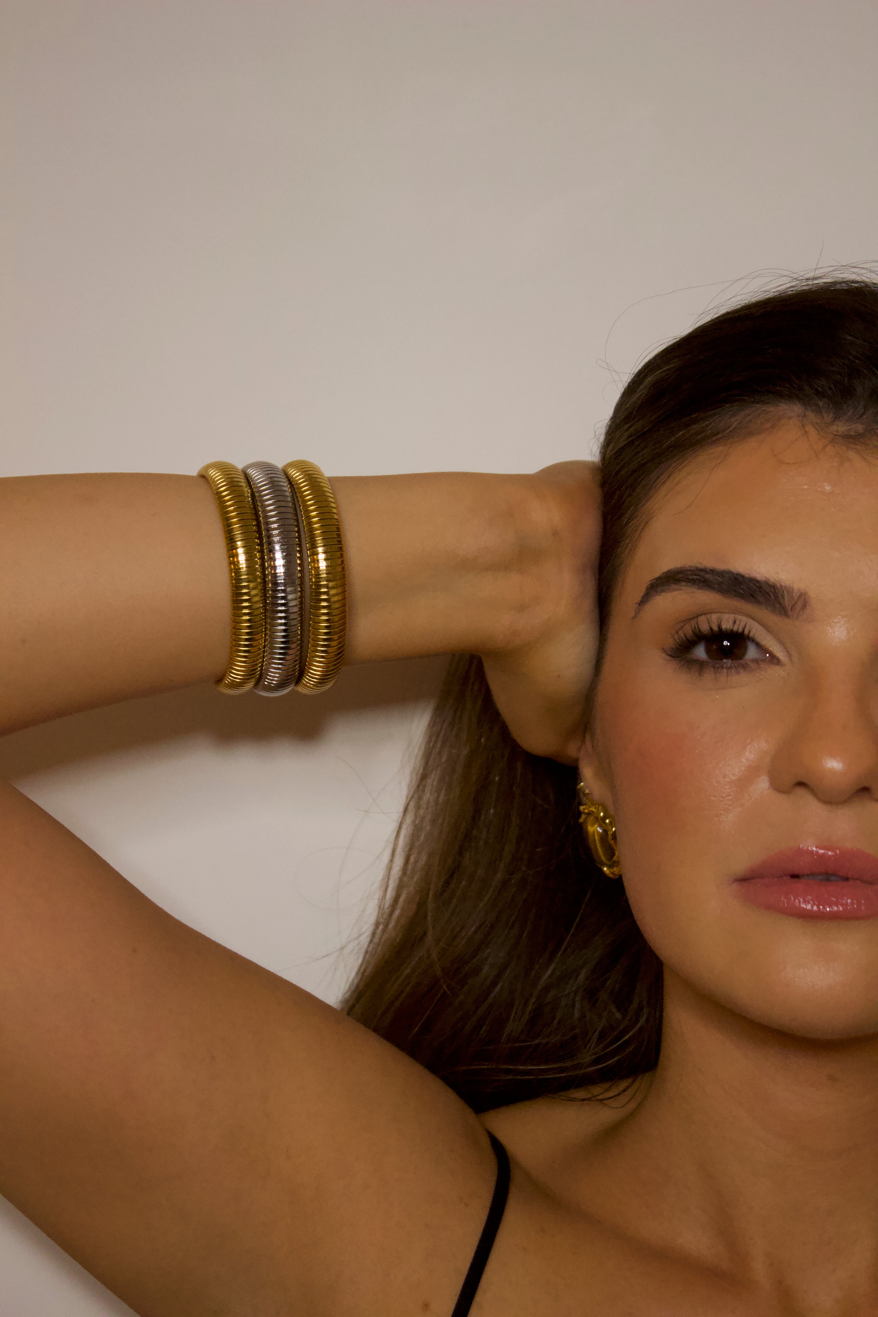 Timeless style, without the compromise. Our jewellery captures the look of 24-carat gold in durable stainless steel — waterproof, tarnish-free, hypoallergenic, and made for everyday life.